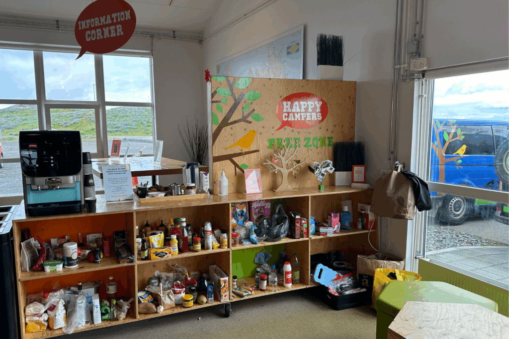 If you rent through Happy Campers they also have a “Free Zone” where other people leave behind unused food and you can take whatever you want. I was able to snag bread, peanut butter, jelly, ramen, chips, cooking oil, salt & pepper, coffee, and more! That helped save a ton on getting groceries.